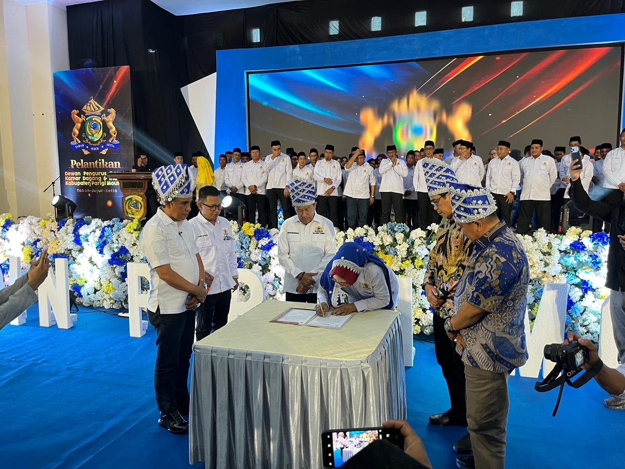 PARIGI MOUTONG – Kamar Dagang dan Industri (Kadin) Kabupaten Parigi Moutong resmi memulai babak baru kepengurusan. Bertempat di Aula Kantor Bupati Parigi Moutong, Sabtu (24/1/2026) pukul 13.00 WITA, jajaran pengurus Kadin Parimo resmi dilantik oleh Ketua Umum Kadin Sulawesi Tengah, H. M. Nur Dg. Rahmatu.