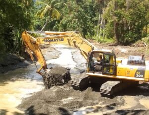 BANGGAI, – Perusahaan PT. Balantak Sirtu Utama (BSU) sebuah perusahaan galian C diwilayah Desa Batu Mandi Kec. Balantak Utara, pasca banjir yang terjadi Jum’at (27/3) dan Rabu (1/4), telah melakukan inisiatif dengan aksi cepat turun tangan membantu dengan mengerahkan 2 unit alat berat excavator guna mempercepat pemulihan dengan mengeruk sungai akibat terjadinya pendangkalan, dan membersihkan aliran sungai dari material banjir.