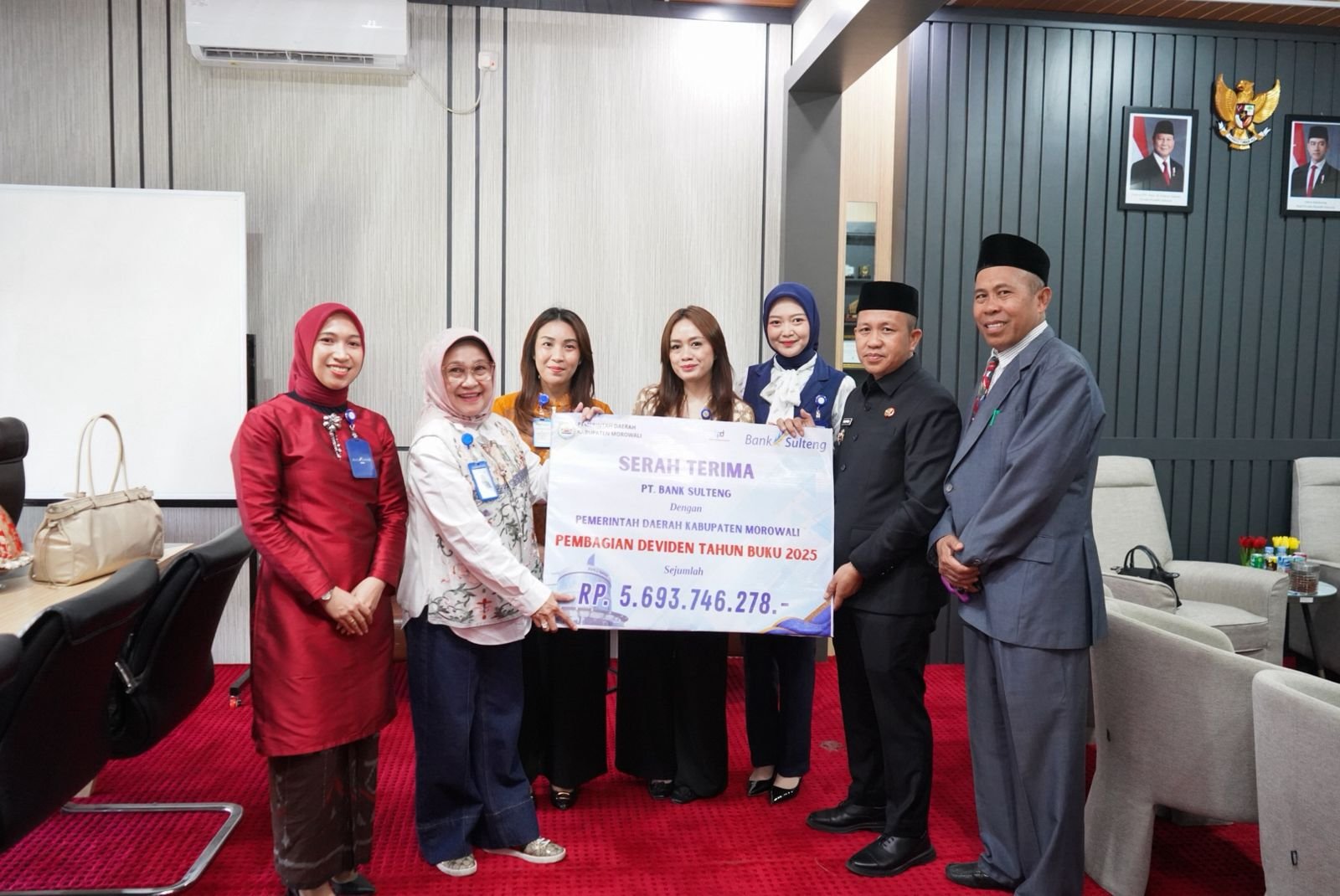 MOROWALI – PT Bank Pembangunan Daerah Sulawesi Tengah menyerahkan dividen sebesar Rp5.693.746.278 kepada Pemerintah Kabupaten Morowali sebagai bagian dari hasil kinerja positif tahun buku terakhir yang telah disahkan dalam Rapat Umum Pemegang Saham (RUPS).