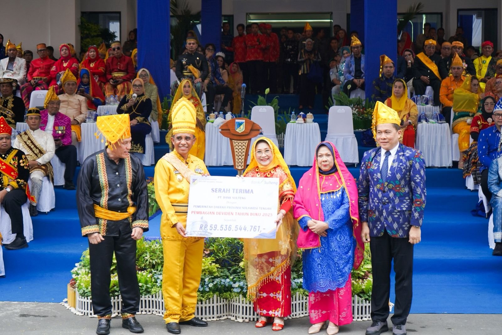 Dividen tersebut diserahkan langsung oleh Direktur Utama Hj. Ramiyatie kepada Gubernur Sulawesi Tengah di halaman Kantor Gubernur Sulawesi Tengah, pada upacara peringatan Hari Ulang Tahun (HUT) ke-62 Provinsi Sulawesi Tengah, Senin (13/4/2026).