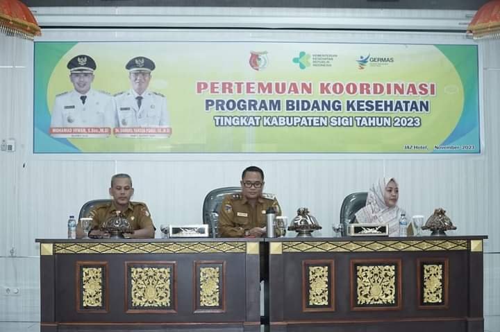 SIGI-Bagian Humas dan Protokoler Pimpinan (Prokopim) Pemerintah Kabupaten (Pemkab) Sigi, dalam siaran persnya menjelaskan, Wakil Bupati (Wabup) Sigi, Samuel Yansen Pongi menghadiri acara pertemuan koordinasi program bidang kesehatan tingkat Kabupaten Sigi tahun 2023, Selasa (14/11/2023).