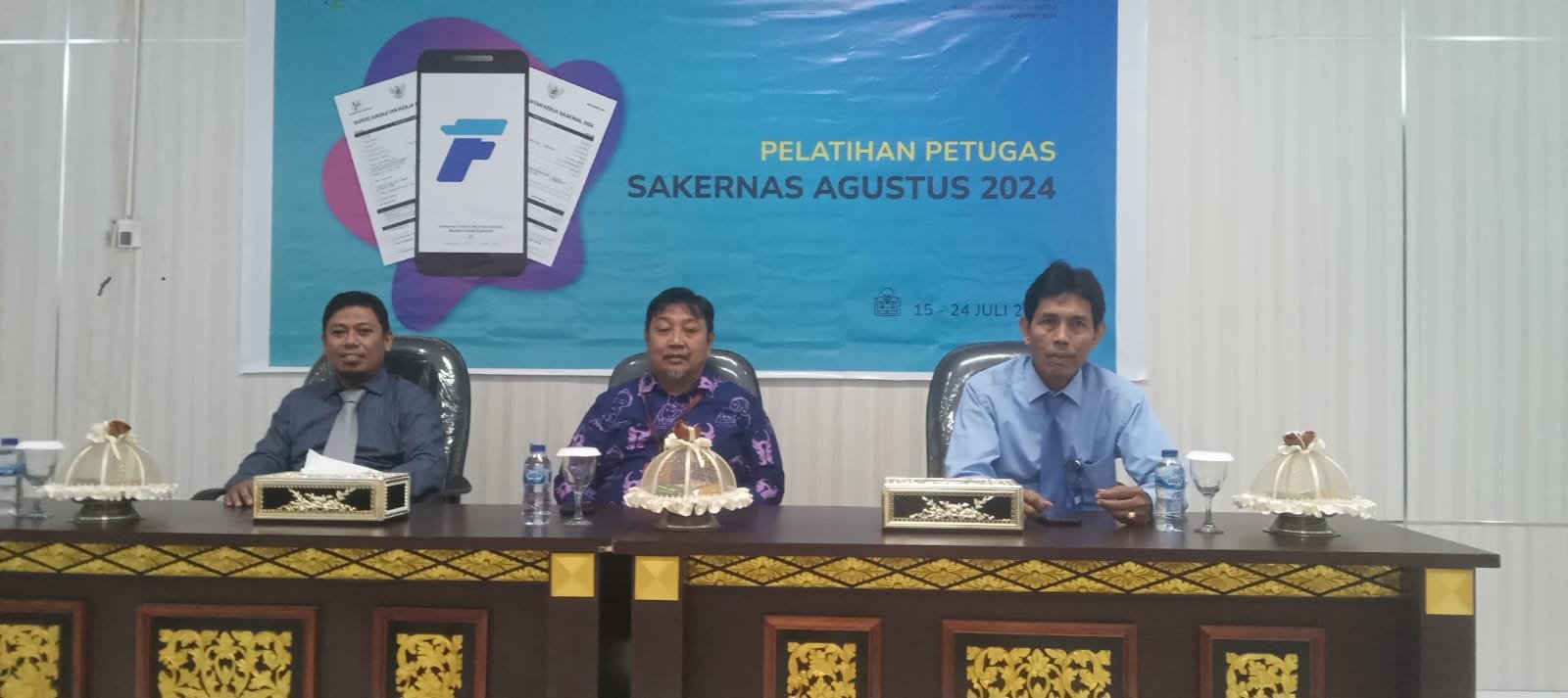 PALU-Kepala BPS Kabupaten Donggala, Agus Paryanto, SE, membuka secara resmi pelaksanaan pelatihan Survei Angkatan Kerja Nasional (Sakernas) periode Agustus 2024, di sebuah hotel di Kota Palu, yang digelar 12 Juli sampai dengan 24 Juli 2024.