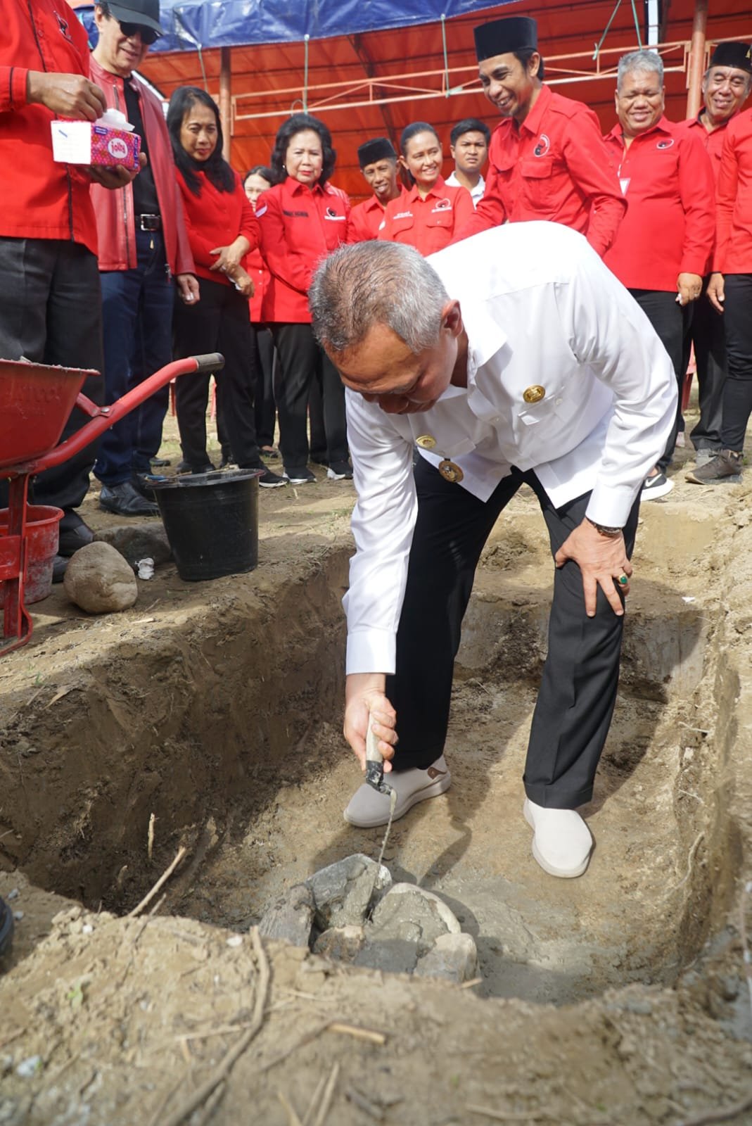 Acara peletakan batu pertama ini melambangkan dimulainya konsolidasi organisasi PDI Perjuangan di daerah dan semangat mendukung pembangunan politik yang konstruktif di Kabupaten Sigi.(*/SH)