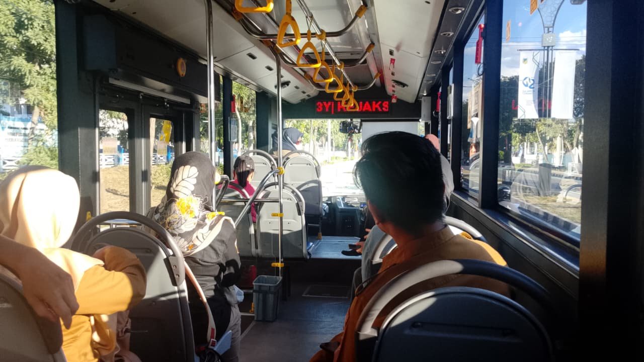 Di dalam bus, hanya terdapat lima ASN yang memanfaatkan layanan tersebut. Saat berhenti di halte Moh. Yamin, satu ASN turun dari bus. Sementara di beberapa titik pemberhentian, terlihat ASN berdiri di tepi jalan menunggu bus dengan rute berbeda.