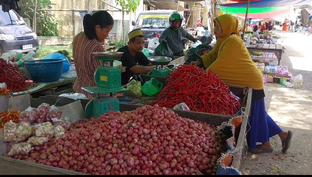 Harga bawang merah yang semula Rp44.000 per kilogram (kg) kini berada di kisaran Rp38.000. Sementara, cabai rawit turun dari Rp45.000 menjadi Rp35.000 per kg. Adapun tomat yang sebelumnya dijual Rp6.000 kini hanya Rp5.000 per kg.