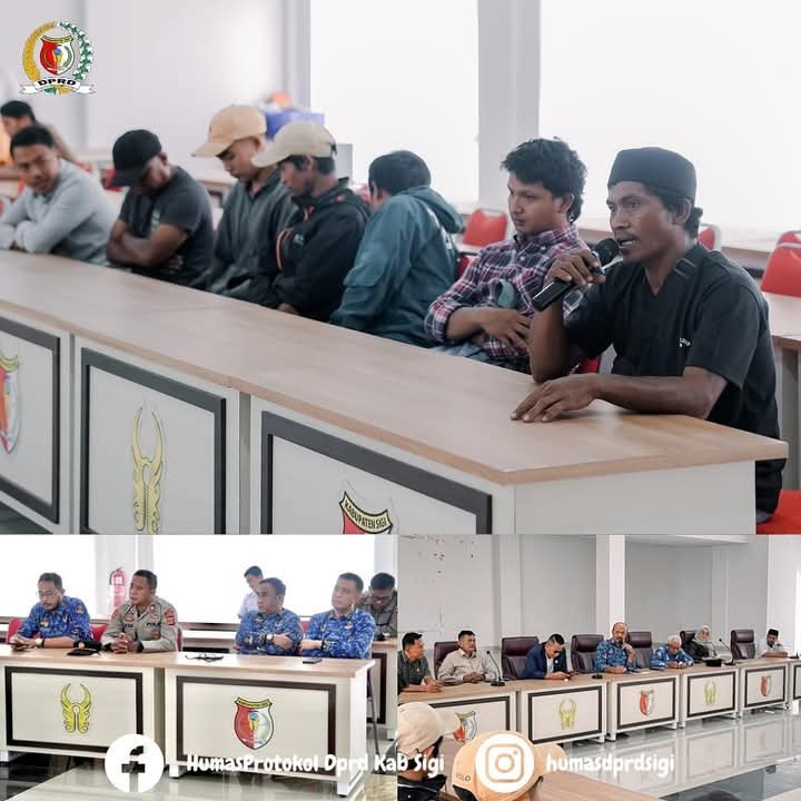 SIGI-Ketua Komisi I DPRD Kabupaten Sigi, Dahyar S Repadjori, S.Sos, bersama Wakil Ketua Komisi I Hj. Hazizah, SM., MM, serta Sekretaris Komisi I Ardiansyah, SE, dan beberapa anggota DPRD Kabupaten Sigi bertemu massa aksi, di aula Kantor Bupati Sigi, Senin (17/03/2025).