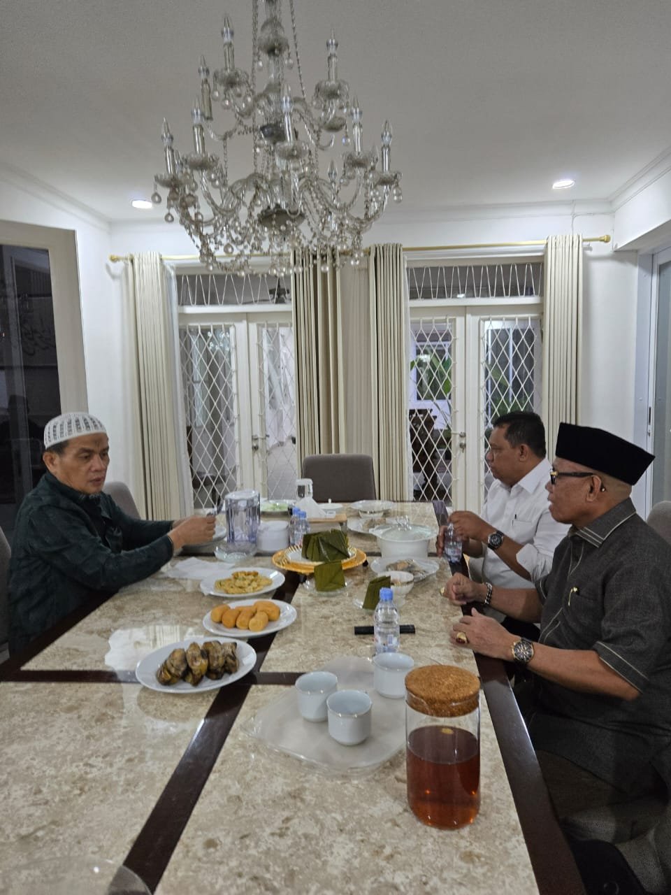 JAKARTA-Pimpinan Kelompok Bimbingan Ibadah Haji dan Umroh (KBIUH) PT Babussalam Citra Mandiri H. Mustamin Umar baru saja bertemu dengan Wakil Menteri (Wamen) Agama RI, Dr. Romo H. Muhammad Syafi’i, SH., M. Hum, di kediaman Wamen di Jln Prapanca Jakarta. Pertemuan bertajuk silaturahmi antara seorang pengusaha yang membawa sebuah misi mendekatkan diri dengan kekuatan pusat. Tidak sekadar sebuah pertemuan biasa, namun mengandung energi positif yang diemban Haji Mustamin.