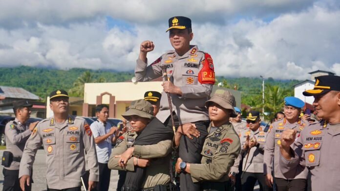 Kabar68.Poso – Kapolda Sulawesi Tengah Irjen Pol Dr Endi Sutendi meninjau Pos Komando Taktis (Poskotis) Tokorondo di Kabupaten Poso, Kamis (11/12/2025). Kedatangannya sebagai Penanggung Jawab Kebijakan Operasi (PJKO) Ops Madago Raya disambut jajar hormat personel yang berdiri rapi di halaman pos. Suasana penyambutan makin hidup dengan lantunan yel-yel semangat dari seluruh personel.