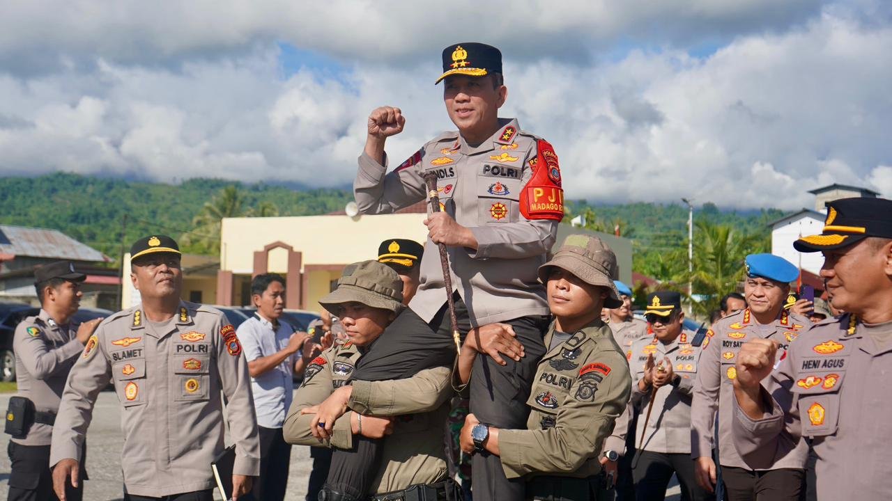 Kapolda Sulteng juga memberikan motivasi tambahan kepada para personel agar tetap menjaga stamina dan semangat selama penugasan.