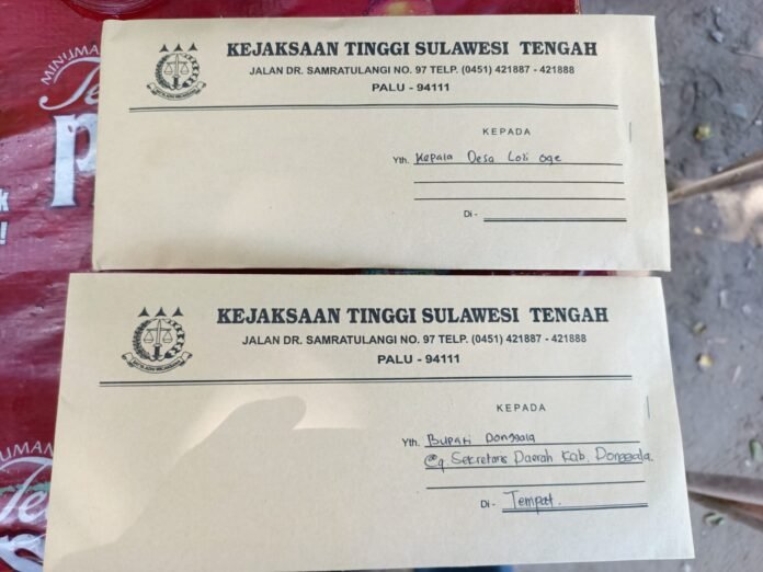 PALU – Kejaksaan Tinggi Sulawesi Tengah melayangkan surat panggilan kepada Bupati Donggala cq Sekretaris Daerah Kabupaten Donggala dan Kepala Desa Loli Oge, tertanggal Selasa (14/4).