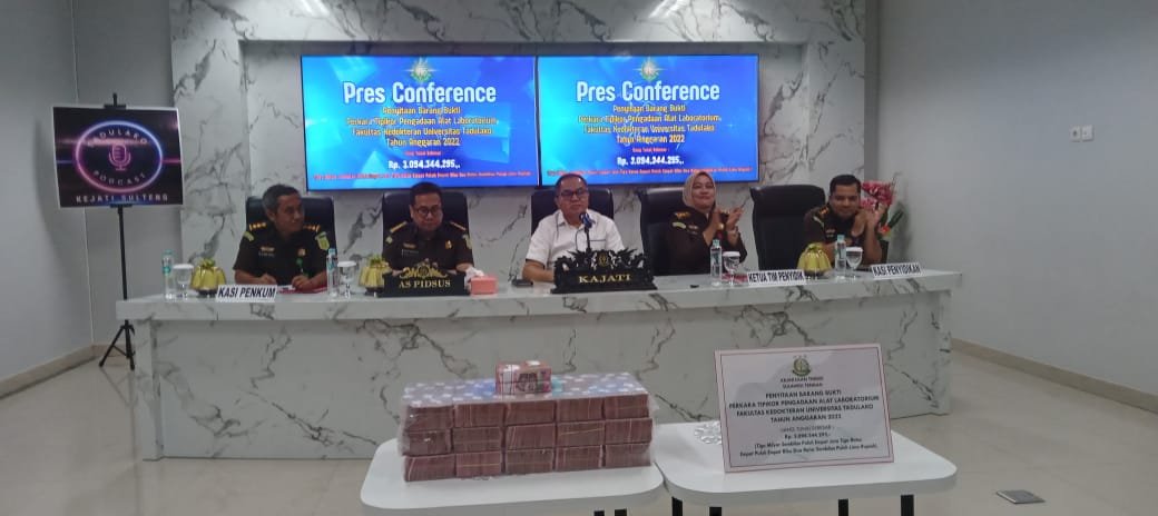 PALU-Kejaksaan Tinggi (Kejati) Sulawesi Tengah berhasil menyita uang tunai senilai Rp 3 miliar lebih terkait dugaan korupsi pengadaan alat laboratorium di Fakultas Kedokteran (FK) Universitas Tadulako (Untad) Palu tahun anggaran 2022. Penyidik Kejati telah menerima hasil Perhitungan Kerugian Negara (PKN) dari auditor publik yang menunjukkan adanya kerugian negara dengan nominal tersebut.