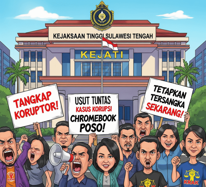 Untuk itu, Koalisi Rakyat Anti Korupsi (KRAK) Sulawesi Tengah, mendesak kepala Kejaksaan Tinggi  (Kajati) Sulteng, untuk segera menetapkan tersangka kasus dugaan tindak pidana korupsi pengadaan chromebook sebesar Rp 13,4 miliar, pada Dinas Pendidikan dan Kebudayaan Kabupaten Poso Tahun 2022, yang telah dilakukan penyelidikan sejak 5 Pebruari 2025.