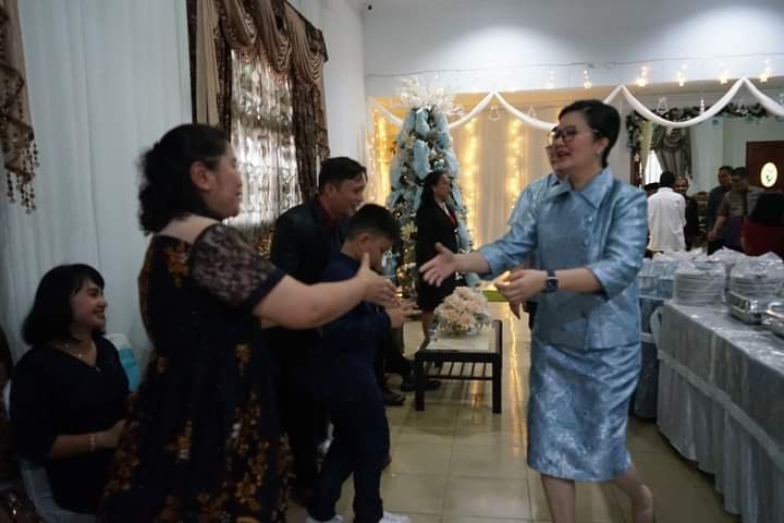 POSO-Suasana penuh keakraban mewarnai silaturahmi moment Natal, yang dirayakan penuh sukacita oleh Bupati Poso dr. Verna GM Inkiriwang bersama keluarga besarnya dengan menerima para tamu dari berbagai kalangan di rumah jabatan (Rujab) Bupati, Senin 25 Desember 2023.