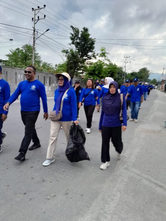 proses pembersihan itu dirangkaikan dengan jalan santai. “Kami dapat sehatnya dengan jalan santai,