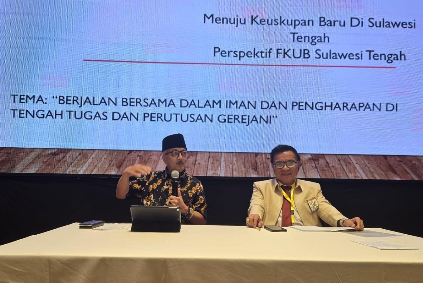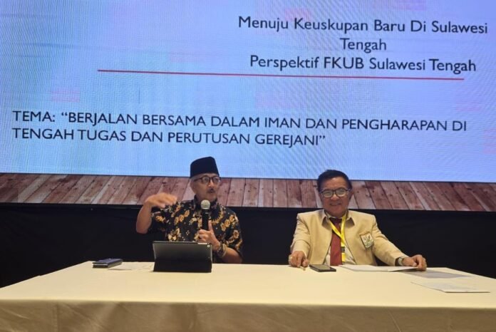 Palu – Ketua Forum Kerukunan Umat Beragama (FKUB) Provinsi Sulawesi Tengah, Prof. Dr. Zainal Abidin, menyampaikan pesan kerukunan dalam kegiatan Rapat Kerja (Raker) ke-II Kaum Bapak Katolik (KBK) Kevikepan Manado yang diselenggarakan di Kota Palu pada 12 – 13 Juli 2025 di salahsatu hotel di Kota Palu.