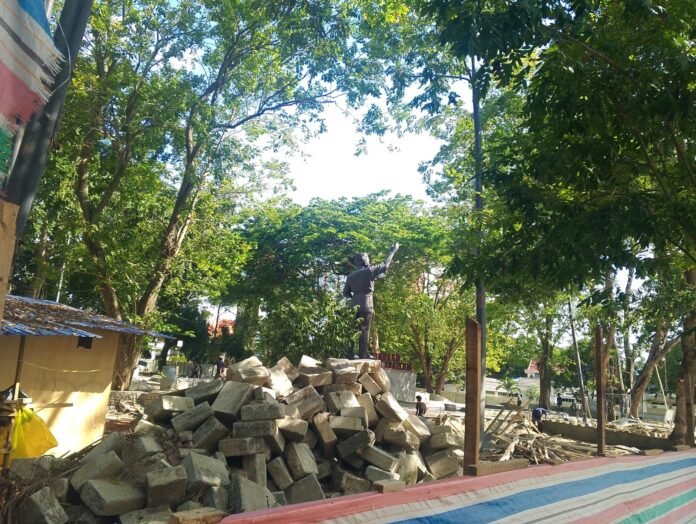 PALU – Pekerjaan revitalisasi Taman GOR Kota Palu dipastikan tidak rampung hingga akhir tahun 2025. Proyek yang menelan anggaran Rp4,8 miliar dari APBD Kota Palu itu masih menyisakan tumpukan material bangunan di sejumlah titik lokasi.