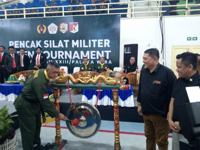 PALU – Pencak Silat Militer (PSM) Open Turnamen Piala Pangdam XXIII/Palaka Wira Tahun 2026 digelar di Gelora Bumi Kaktus Andi Raga Pettalolo, Kota Palu, Senin (2/2/2026).