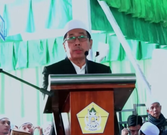 “Alhamdulillah, berkat rahmat Allah SWT, kita dipertemukan di hari yang bersejarah ini dalam rangka memperingati haul ke-58 Guru Tua yang kita cintai dan banggakan bersama,” ujarnya dalam sambutan.