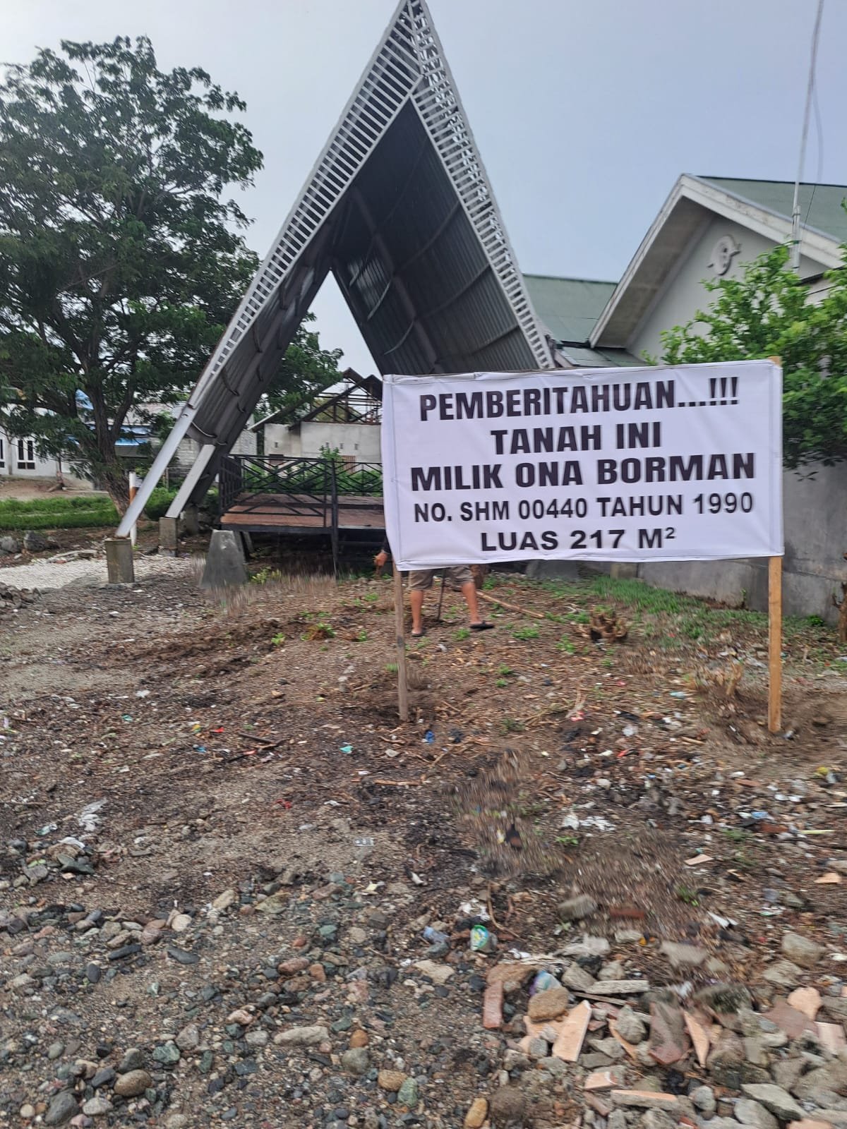 PALU-Kuasa Hukum Ona Borman, Nasrul Jamaludin, SH, melayangkan somasi atau keberatan kepada Walikota Palu, terkait pembangunan rumah adat di atas tanah milik kliennya di Kelurahan Tanamodidndi, Kecamatan Matikulore, Kota Palu, yang sudah bersertifikat SHM dengan nomor 440/Tanamodindi tahun 1990 dan surat ukur dengan nomor 1209/1990 Tanggal 19 Juli 1990 seluas 217 M2 dengan batas-batas tanah yakni, Sebelah Utara berbatasan dengan tanah milik Roni Anugerah, Sebelah Timur dengan jalan, Sebelah Selatan dengan tanah milik Hasan Musantina, dan Sebelah Barat dengan lapangan bola kaki.
