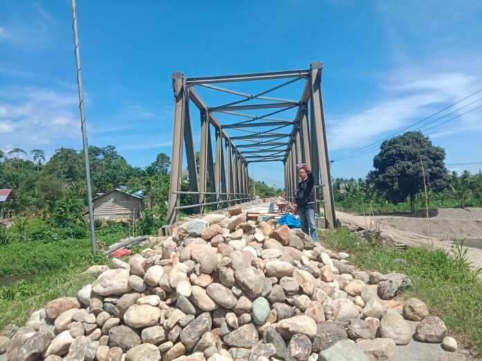 Sedangkan jembatan di daerah trans Air Terang II Kecamatan Tiloan, nama proyek rehabilitasi jembatan Air Terang II, nomor kontrak 630/975/SP-DIS.BMPR, tanggal kontrak 08 Agustus 2024, pelaksanaan 146 hari kalender, nilai kontrak Rp 711,4 juta, sumber dana DAU, tahun anggaran 2024, dikerjakan oleh konrtraktor asal Palu CV Galara Gemilang, dan konsultan CV Ramayana Rancang Bangun.(ari)